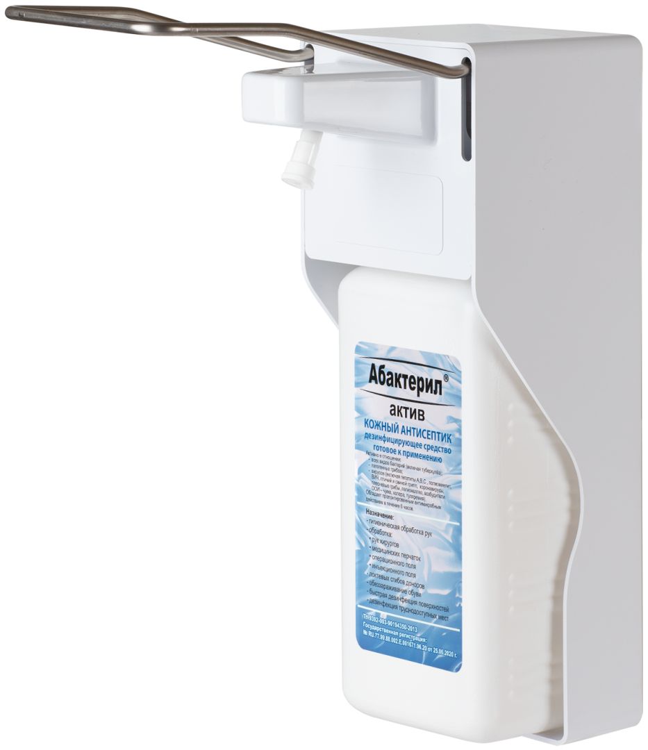 Дозатор выполнен из прочного АБС-пластика (корпус) и антикоррозийной нержавеющей стали (рычаг). Материал исполнения устойчив к воздействию средств, содержащих спирт, хлор и другим агрессивным составам, применяемым при дезобработке и профилактических мероприятиях.