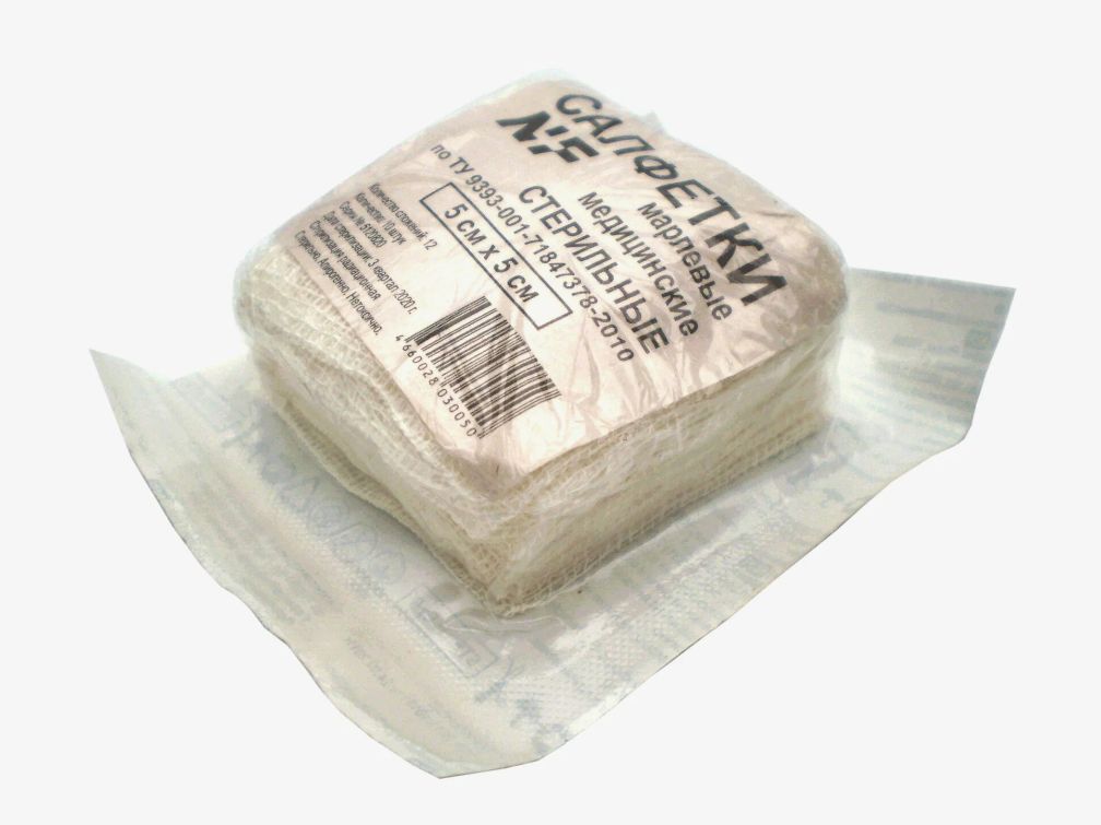 Марлевые салфетки стерильные - изготавливаются из отбеленной хлопчатобумажной медицинской марли, путем сложения в несколько слоев. Салфетки марлевые медицинские стерильные различного размера - применяются для использования в качестве готовых операционно-перевязочных средств, для наложения повязок, осушения ран, при перевязках и операциях, для тампонады с целью остановки кровотечения и дренирования, закрепления перевязочного материала, давления на какую-нибудь часть тела (в основном, для остановки кровотечения), предупреждения отека тканей или удержания конечности либо иной части тела в неподвижном состоянии, а также для защиты раны или измененной поверхности кожи от воздействия внешней среды - фиксируются бинтом или медицинским пластырем.