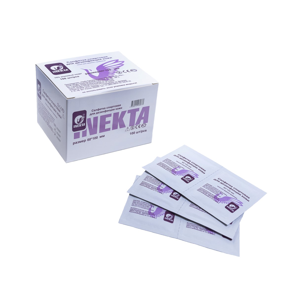 Салфетка спиртовая для инъекций 60*100 мм №100, Inekta